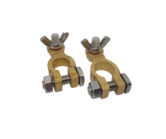 Mosiężne klemy do akumulatora przeznaczone do pewnego i stabilnego podłączania przewodów zasilających do biegunów akumulatora. Zapewniają dobrą przewodność elektryczną oraz trwałe połączenie, ograniczając straty energii i ryzyko przegrzewania styków.